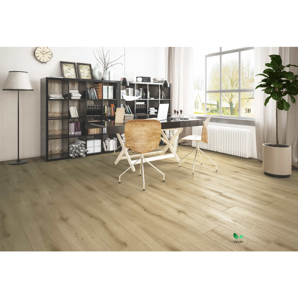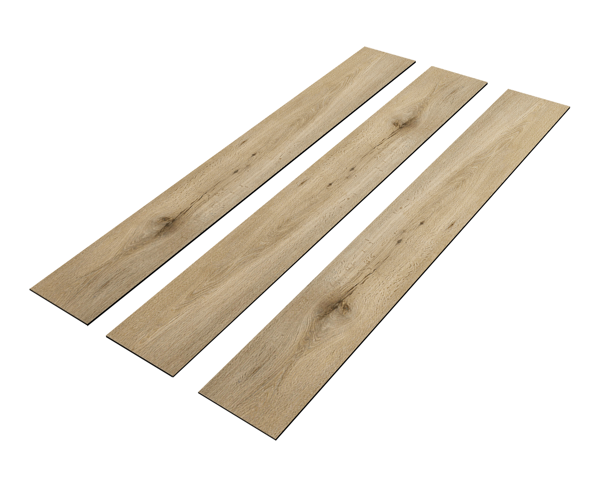 Vinylová podlaha s Click systémom, celková hrúbka 5 mm, z toho: nášľapná vrstva je 0,5 mm, 1 mm integrovaná podložka EVA, skosené hrany po všetkých 4 stranách. Rigidné SPC vinylové dielce.