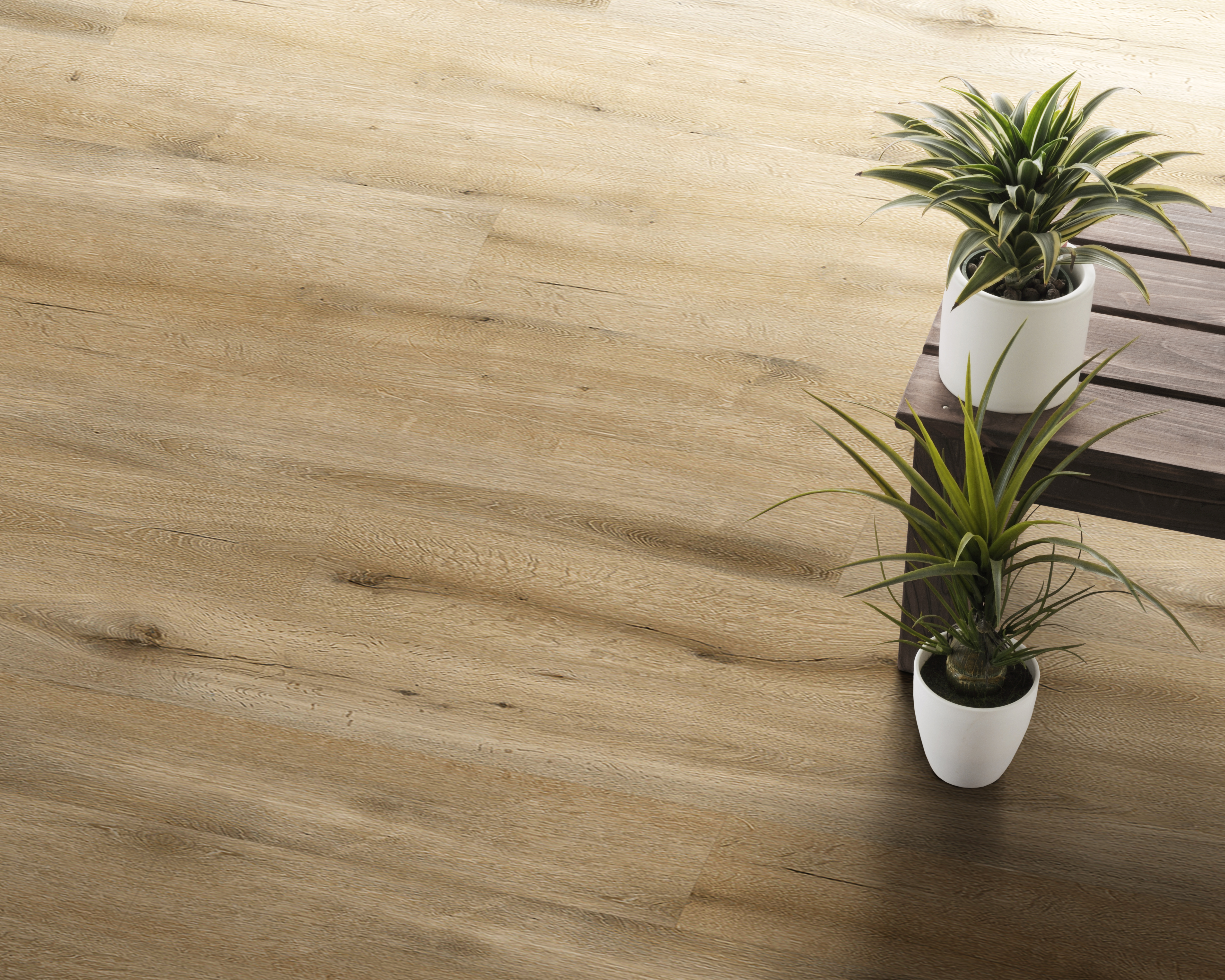 -Spodní vrstva podlahy je tvořena vysoce hustým kompozitním jádrem, na kterém je umístěn zámkový systém. Kompozitní jádro je tvořeno nosnou SPC deskou, která zajišťuje vysokou odolnost celé podlahy a stabilitu zámkového spoje. SPC doska i povrch podlahy odolává vlhkosti, a proto se nemusíte bát instalace v koupelnách, kuchyních a dalších miestnosťech, kde se objevuje vysoká vzdušná vlhkost nebo se občas vylije voda.