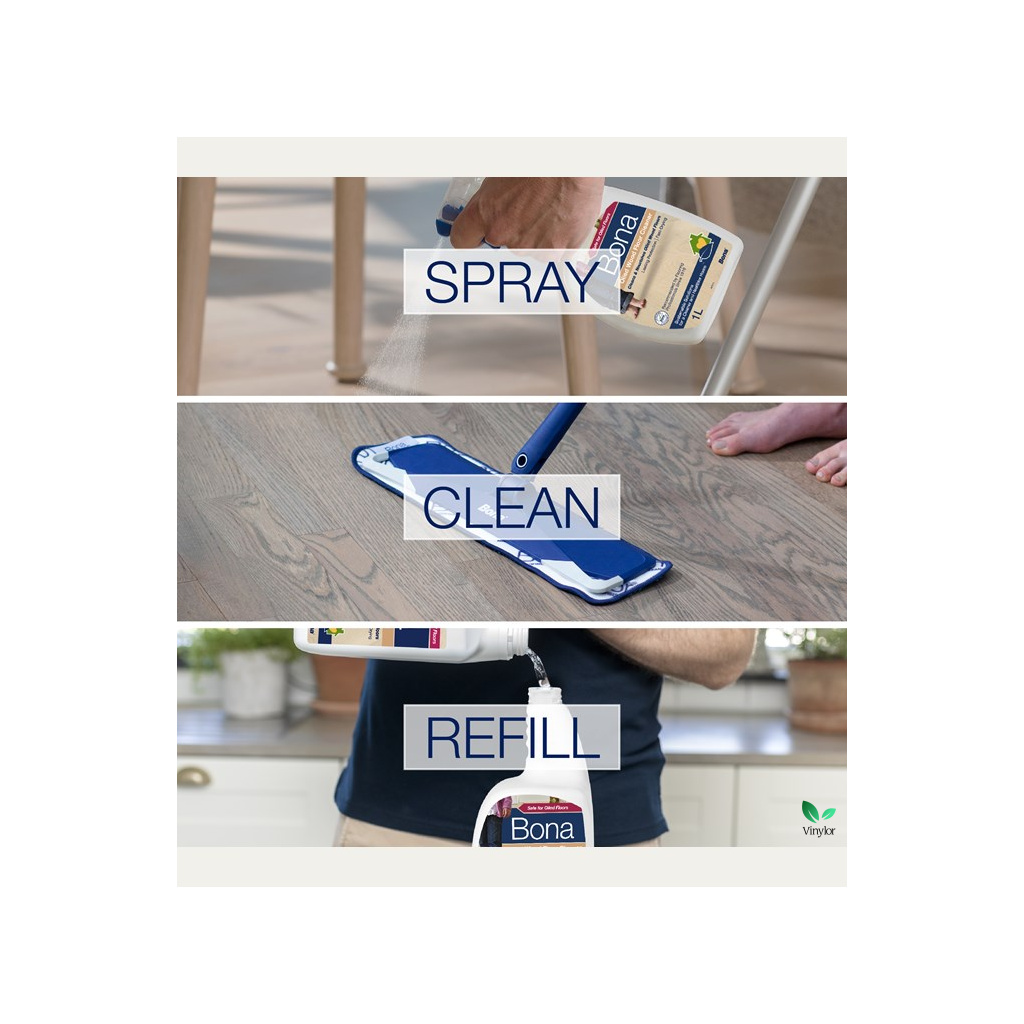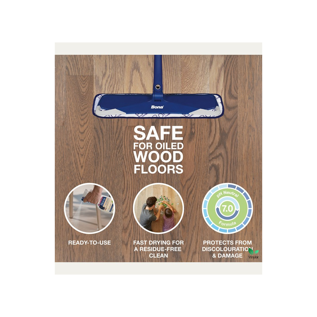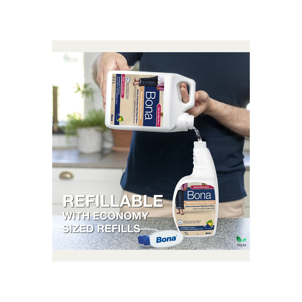 Bona Čistič na olejované podlahy je bezpečný, pro snadné a efektivní čištení naolejovaných drevených podlah. Čistí a nasycuje povrch drevené podlahy pro zajištení jeho lepší ochrany.
