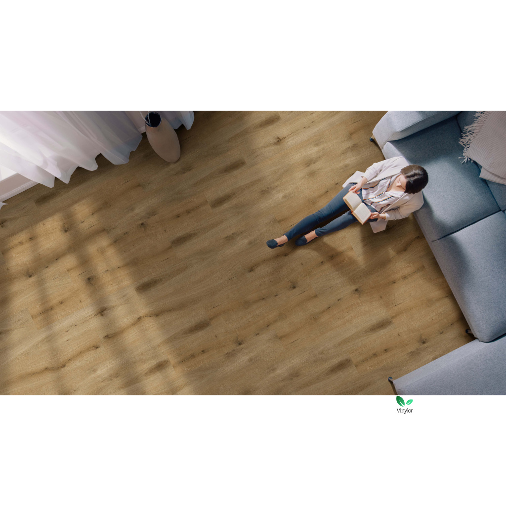 Vinylová podlaha s Click systémom, celková hrúbka 5 mm, z toho: nášľapná vrstva je 0,5 mm, 1 mm integrovaná podložka EVA, skosené hrany po všetkých 4 stranách. Rigidné SPC vinylové dielce.
