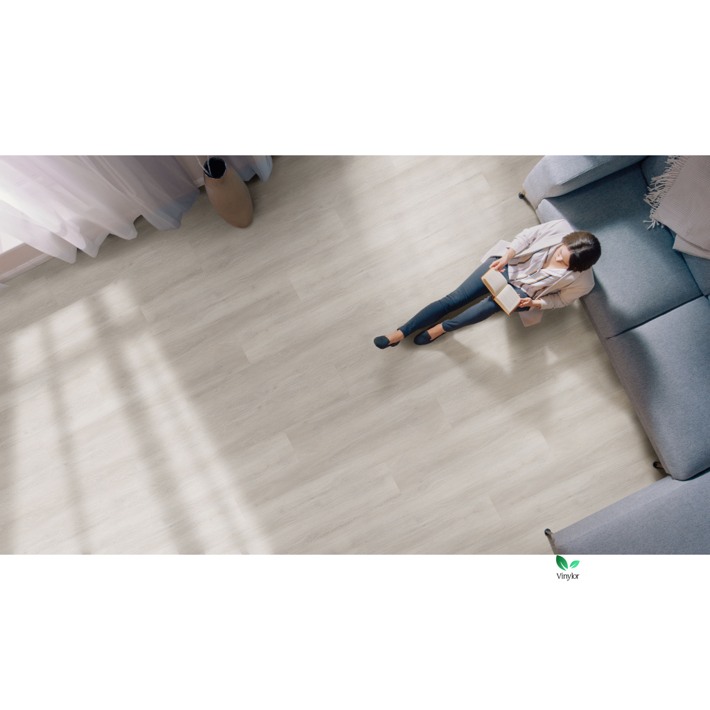 Vinylová podlaha s Click systémom, celková hrúbka 5 mm, z toho: nášľapná vrstva je 0,5 mm, 1 mm integrovaná podložka EVA, skosené hrany po všetkých 4 stranách. Rigidné SPC vinylové dielce.