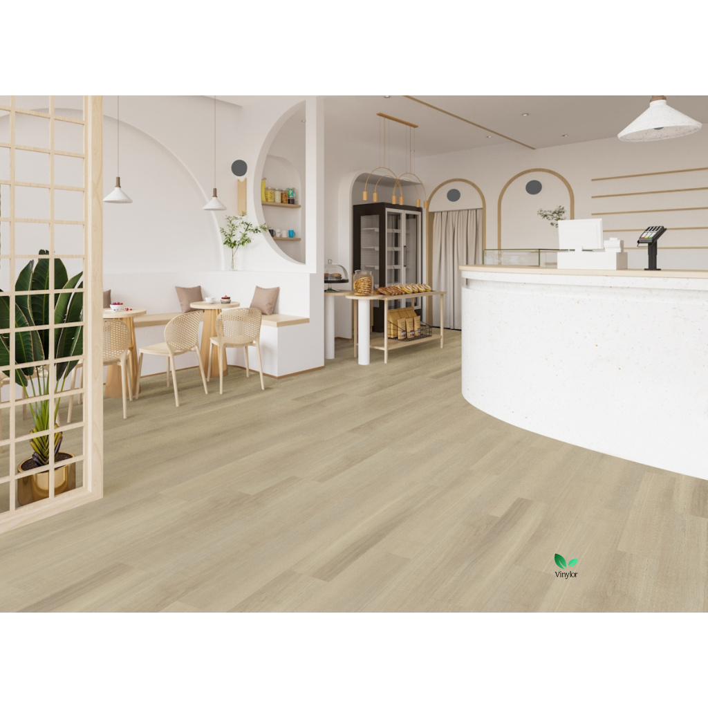 Vinylová podlaha s Click systémom, celková hrúbka 4,5 mm, z toho: nášľapná vrstva je 0,3 mm, 1 mm integrovaná podložka EVA, skosené hrany po všetkých 4 stranách. Rigidné SPC vinylové dielce