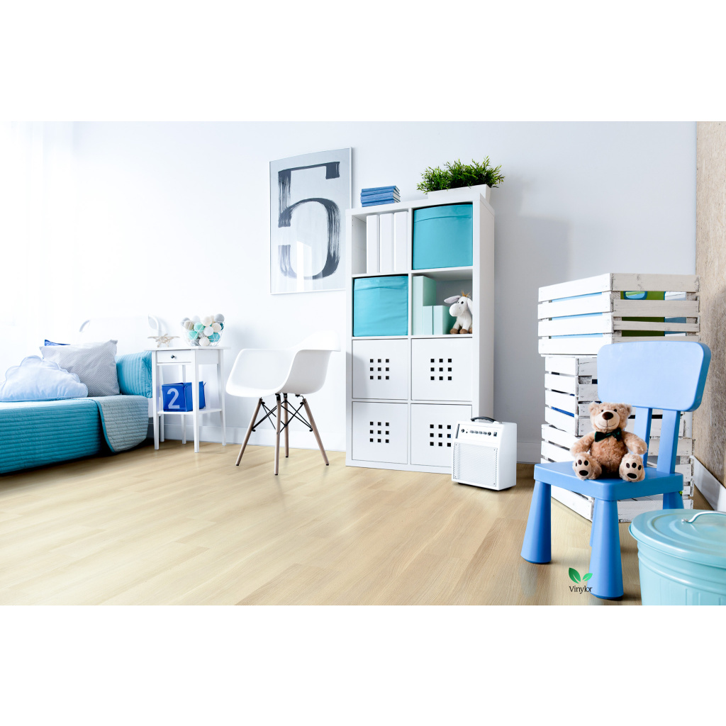 Podlaha neobsahuje ftaláty a splňuje nejpřísnější kritéria na obsah emisí. Podlaha obdržela certifikát ASSURE a GREENGUARD GOLD jakož i veškeré podlahy click v našej nabídce. Je proto vhodná také do dětských pokojů.