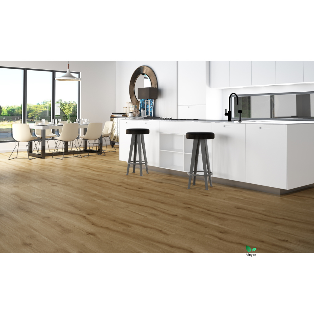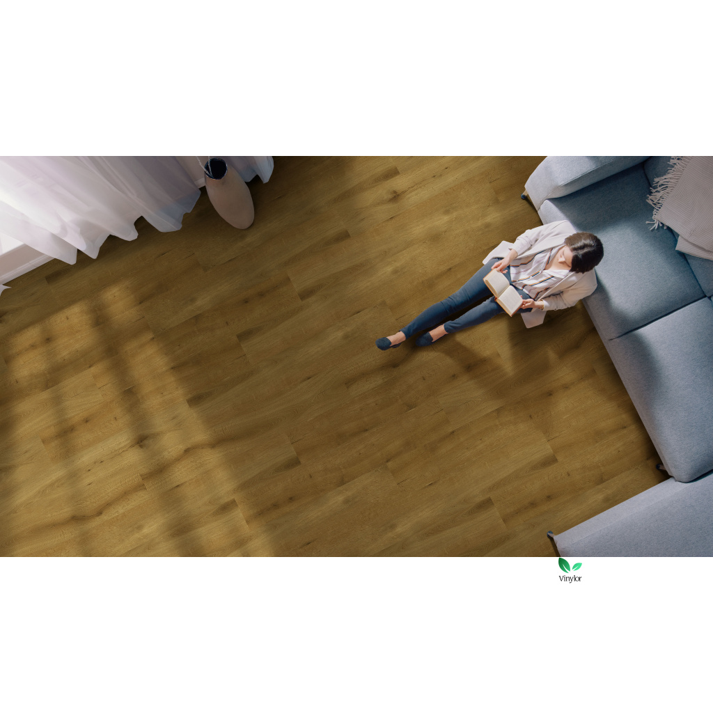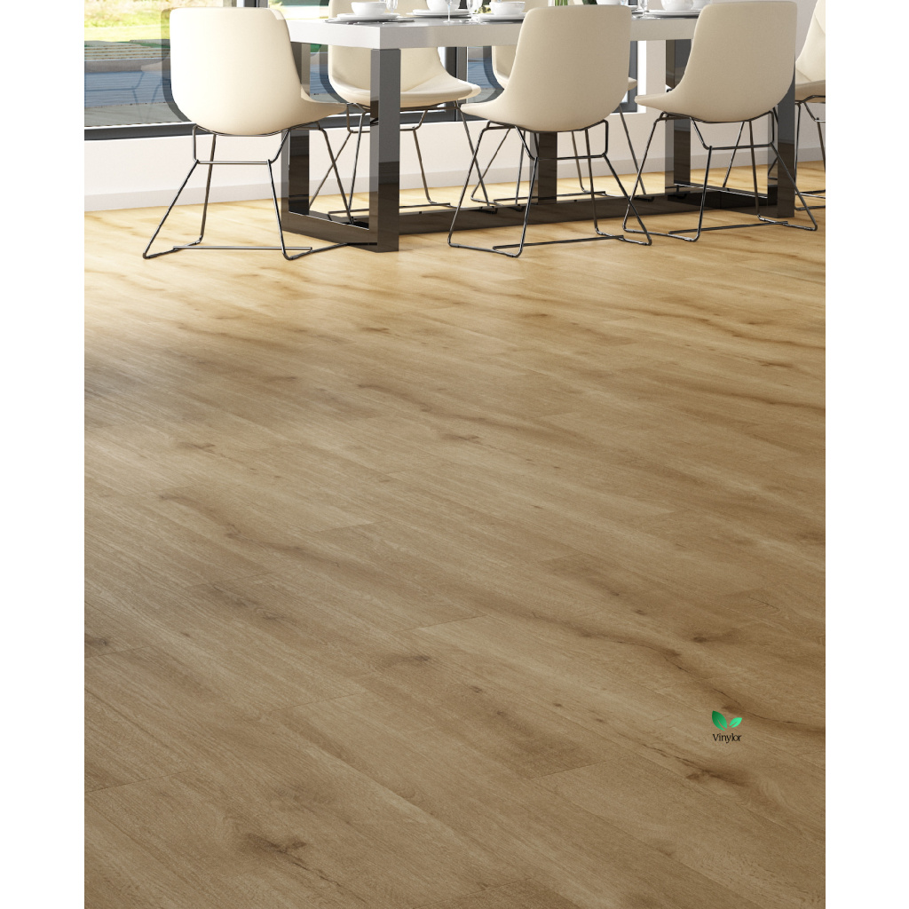 Vinylová Podlaha Rigid SPC Click OAK Honey - hnedá s integrovanou akustickou podložkou EVA 1mm. Podlaha má na spodní straně integrovanou akustickou podložku o síle 1 mm. Není již nutné dávat dodatečnou podložku. Celková hrúbka vinylového dielce je 5 mm a nášľapná vrtsva má sílu 0,5 mm. Ideálna podlaha do bytu pro stredný i vyšší záťaž. Vinylové dielce mají dĺžku 123,5 cm a šírku 17,8 cm, skosené hrany po všetkých 4 stranách, 3D embosovaný povrch.