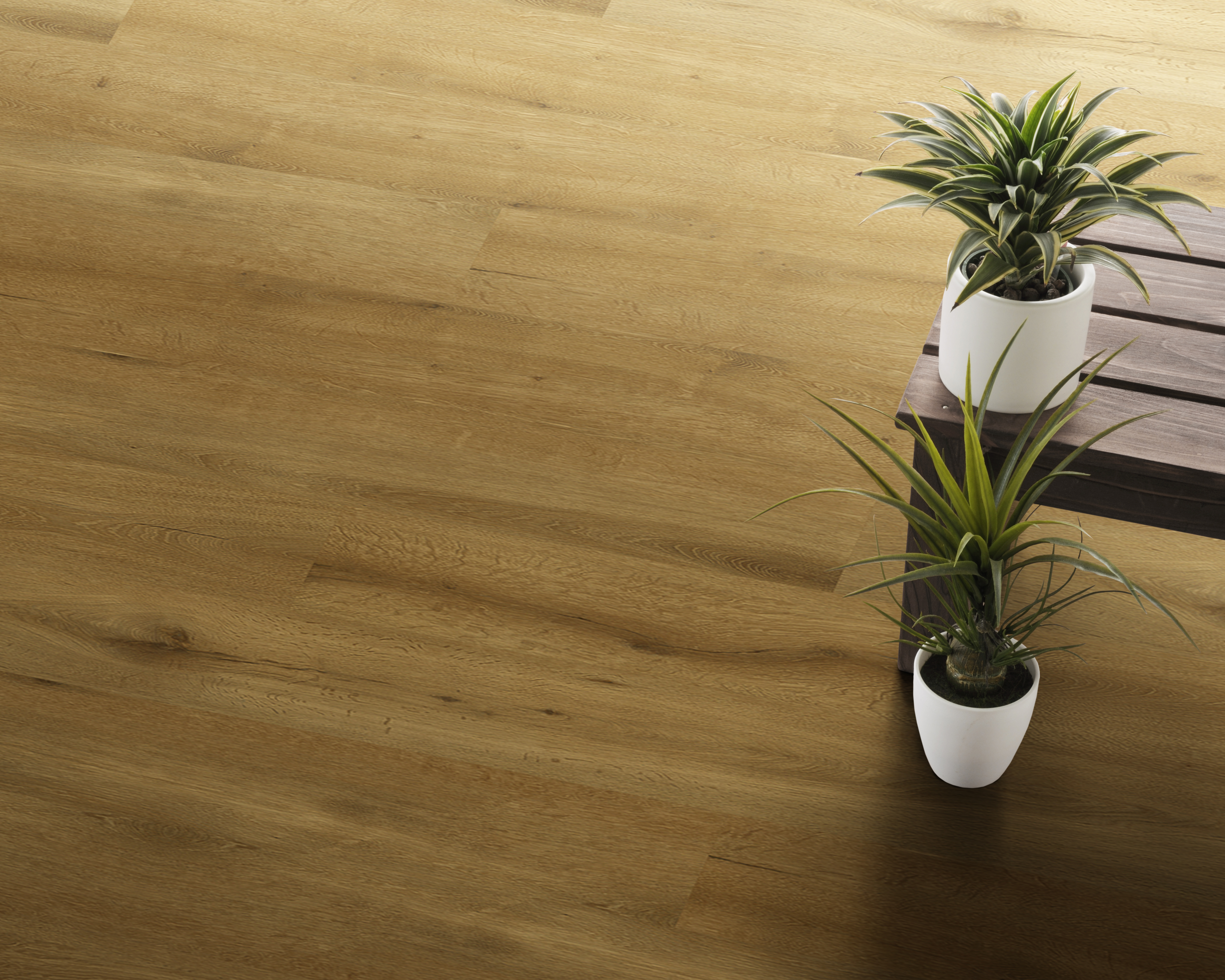-Spodní vrstva podlahy je tvořena vysoce hustým kompozitním jádrem, na kterém je umístěn zámkový systém. Kompozitní jádro je tvořeno nosnou SPC deskou, která zajišťuje vysokou odolnost celé podlahy a stabilitu zámkového spoje. SPC doska i povrch podlahy odolává vlhkosti, a proto se nemusíte bát instalace v koupelnách, kuchyních a dalších miestnosťech, kde se objevuje vysoká vzdušná vlhkost nebo se občas vylije voda.