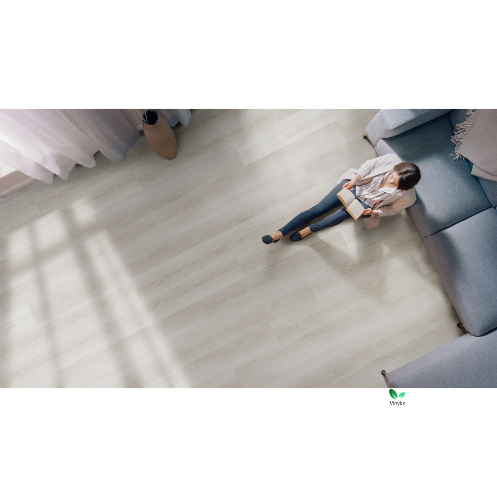 Vinylová Podlaha Rigid SPC Click OAK WINTER- svetlosivá s integrovanou protihlukovou podložkou EVA 1mm. SPC je zkratka pro Stone Plastic Composite, což znamená že podlahy mají tuhé jádro tvořené ze směsi vápence a stabilizátorů. Jsou velmi odolné, hodí se proto i do komerčných priestorov a jsou ideální na podlahové vytápění. Podlaha má na spodní straně integrovanou protihlukovou podložku o síle 1 mm. Není již nutné dávat dodatečnou protihlukovou podložku. Tato podlaha se vyznačuje vyšší odolností vůči poškrábání, a to vďaka silné nášľapné vrstvě 0,5 mm. Poradí si s kolečkovou židlí či Vašimi domácími mazlíčky. Celková hrúbka vinylového dielce je přitom úctihodných 5 mm a vďaka technologii SPC je rozměrově stála. Ideálna podlaha do bytu pro stredný i vyšší záťaž. Tato podlaha vzhledem k veľké nášľapné vrstvě 0,5 mm je možné použít i do komerčných priestorov. Podlaha má vrchní vrsrtvu s přídavkem mikro-keramických částic ,které jsou odolné proti UV záření. Mezi veľké přednosti patří silné jádro na bázi vapence s licencovanou technologií GRIDTECH. Podlaha je 100% voděodolná a proto ji je možné instalovat i do koupelen. Vinylové dielce mají dĺžku 123,5 cm a šírku 17,8 cm a skosené hrany po všetkých 4 stranách. Také se tomuto typu zkosení říká V4 lamela. To znamená že lamela má drobné zkosení po všetkých čtyřech stranách. Drobné V drážky vytvářejí skutečný dojem dřevěné podlahy a výsledný efekt položené podlahy je skvělý. V4 zkosení mají podlahy ve vyšší cenové relaci. Údržba našej vynilové podlahy je naprosto standartní.