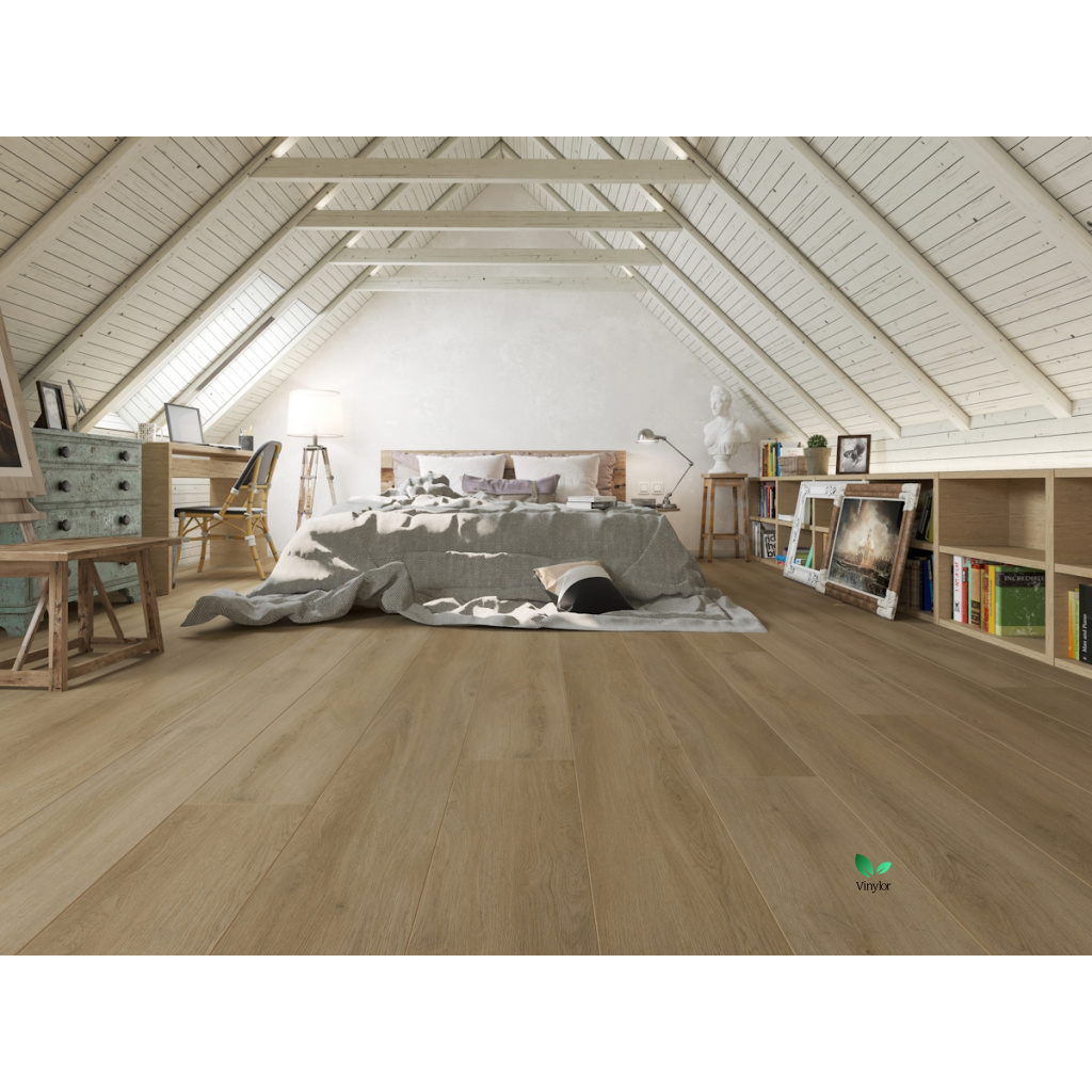 Vinylová Podlaha Rigid SPC Click OAK DETROIT- s integrovanou protihlukovou podložkou EVA 1mm. SPC je zkratka pro Stone Plastic Composite, což znamená že podlahy mají tuhé jádro tvořené ze směsi vápence a stabilizátorů. Jsou velmi odolné, hodí se proto i do komerčných priestorov a jsou ideální na podlahové vytápění. Podlaha má na spodní straně integrovanou protihlukovou podložku o síle 1 mm. Není již nutné dávat dodatečnou protihlukovou podložku. Tato podlaha je ideální volba do bytových prostor, a to vďaka nášľapné vrstvě 0,5 mm. Celková hrúbka vinylového dielce je přitom 5 mm a vďaka technologii SPC je rozměrově stála. Ideálna podlaha do bytu pro stredný i vyšší záťaž. Podlaha má vrchní vrsrtvu s přídavkem mikro-keramických částic ,které jsou odolné proti UV záření. Mezi veľké přednosti patří silné jádro na bázi vapence s licencovanou technologií GRIDTECH. Podlaha je 100% voděodolná a proto ji je možné instalovat i do koupelen. Vinylové dielce mají dĺžku 123,5 cm a šírku 19,2 cm a skosené hrany po všetkých 4 stranách. Také se tomuto typu zkosení říká V4 lamela. To znamená že lamela má drobné zkosení po všetkých čtyřech stranách. Drobné V drážky vytvářejí skutečný dojem dřevěné podlahy a výsledný efekt položené podlahy je skvělý. V4 zkosení mají podlahy ve vyšší cenové relaci. Údržba našej vynilové podlahy je naprosto standartní.