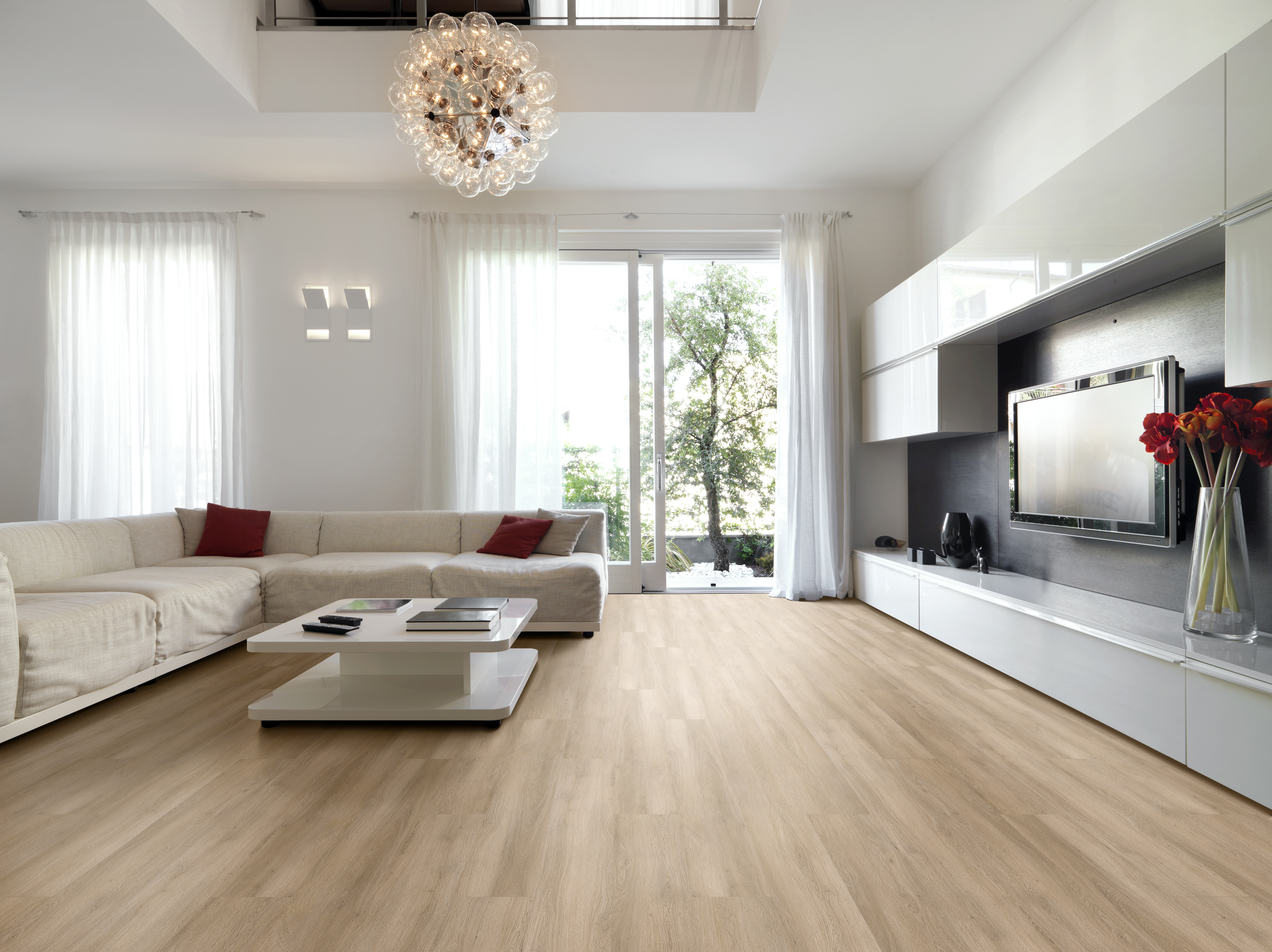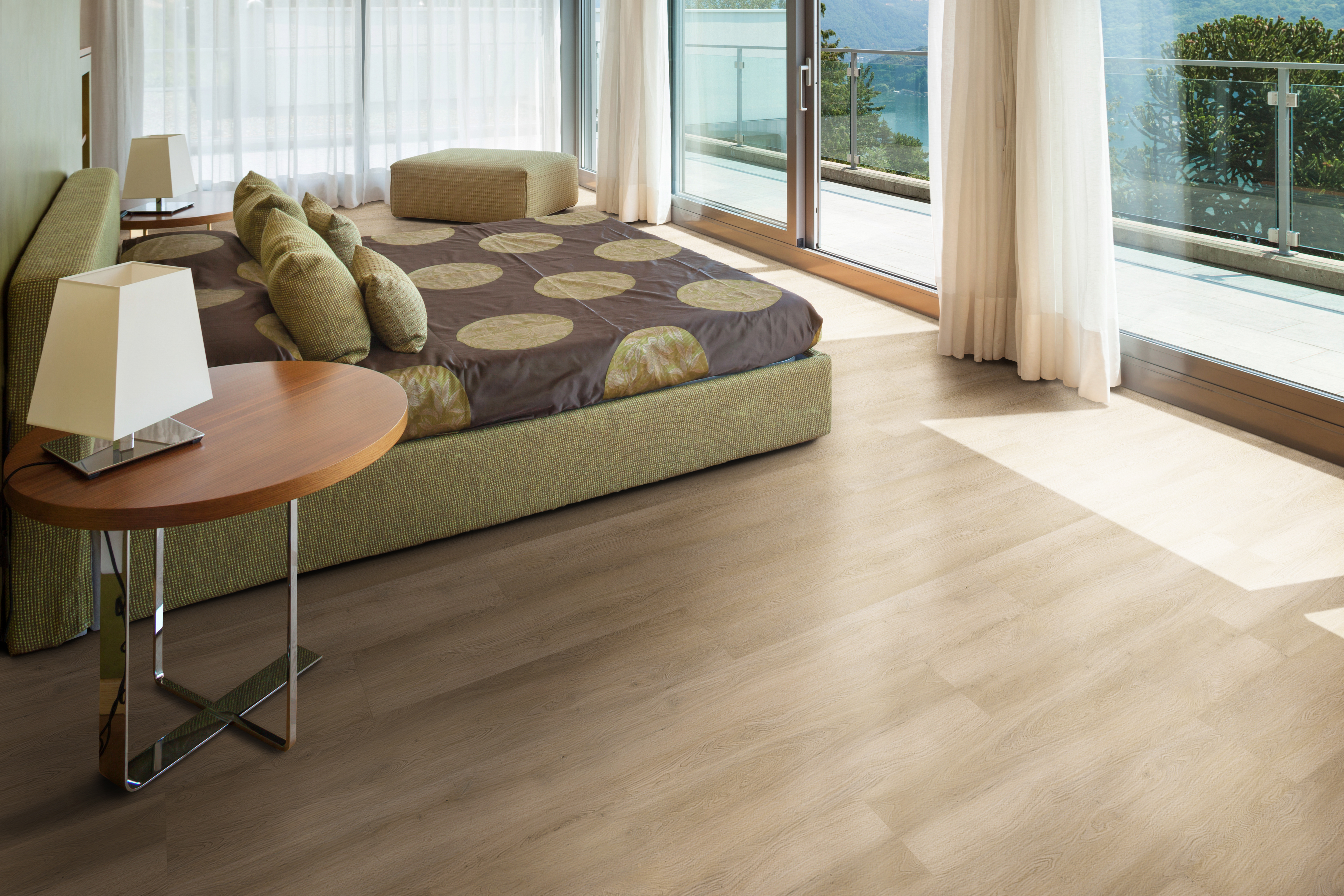 -Povrch podlahy tvoří silná PUR vrstva, která brání jak mechanickému poškození nečistotami a běžným provozem, tak chrání povrch podlahy proti vyblednutí.