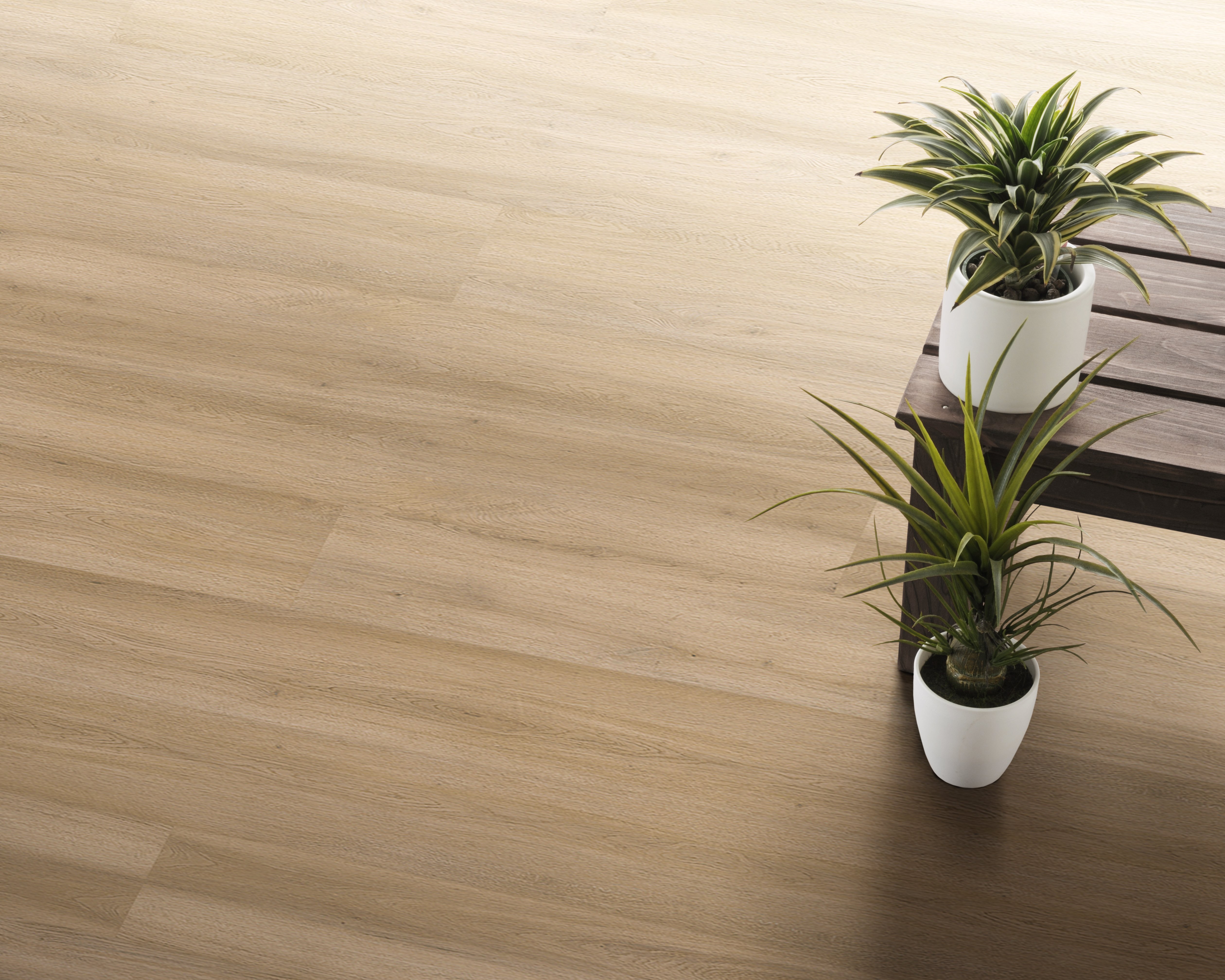 -Spodní vrstva podlahy je tvořena vysoce hustým kompozitním jádrem, na kterém je umístěn zámkový systém. Kompozitní jádro je tvořeno nosnou SPC deskou, která zajišťuje vysokou odolnost celé podlahy a stabilitu zámkového spoje. SPC doska i povrch podlahy odolává vlhkosti, a proto se nemusíte bát instalace v koupelnách, kuchyních a dalších miestnosťech, kde se objevuje vysoká vzdušná vlhkost nebo kde se občas vylije voda.