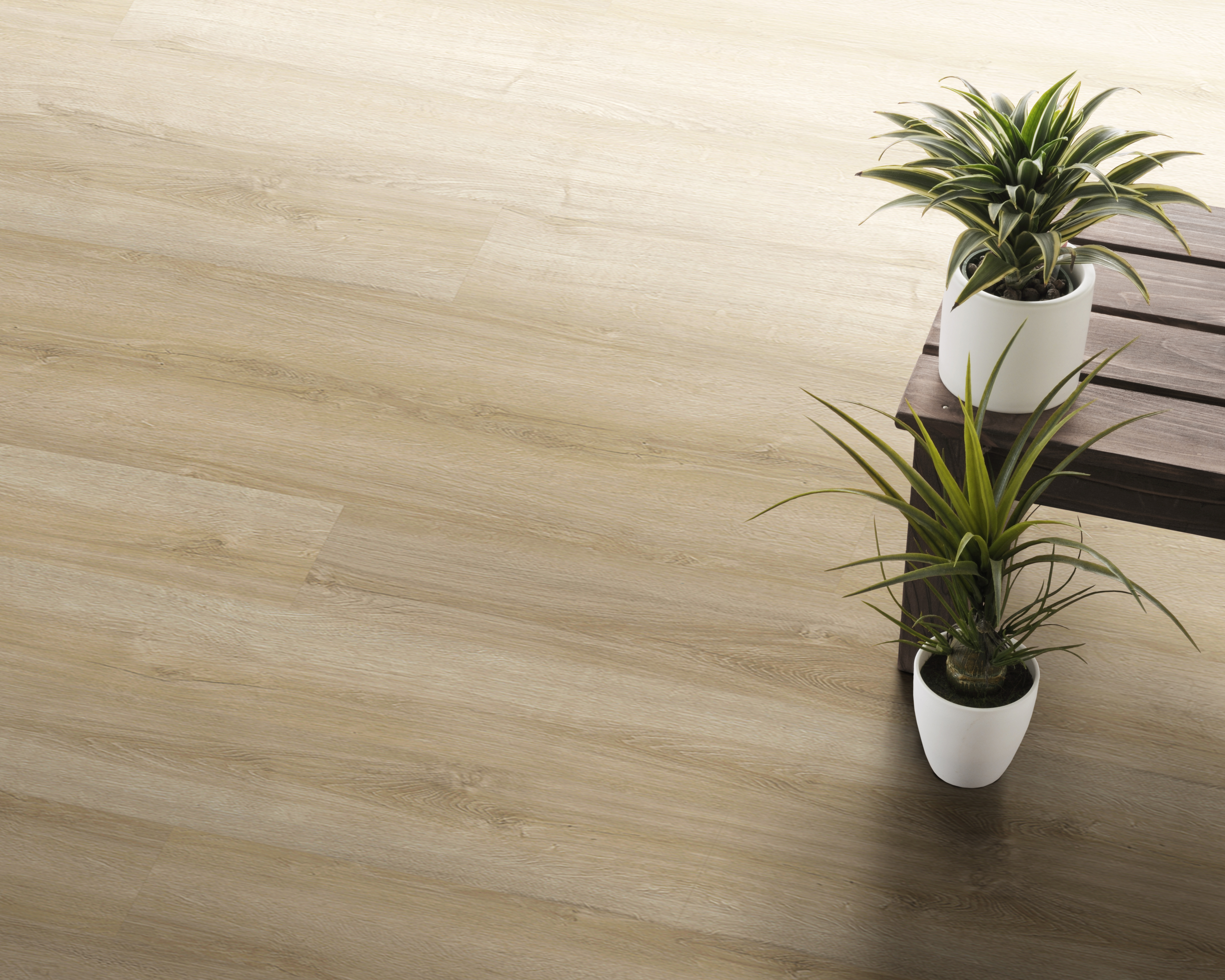 -Spodní vrstva podlahy je tvořena vysoce hustým kompozitním jádrem, na kterém je umístěn zámkový systém. Kompozitní jádro je tvořeno nosnou SPC deskou, která zajišťuje vysokou odolnost celé podlahy a stabilitu zámkového spoje. SPC doska i povrch podlahy odolává vlhkosti, a proto se nemusíte bát instalace v koupelnách, kuchyních a dalších miestnosťech, kde se objevuje vysoká vzdušná vlhkost nebo se občas vylije voda.