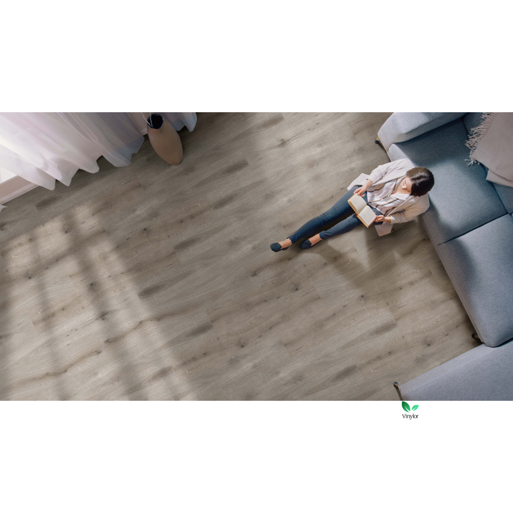 Vinylová Podlaha Rigid SPC Click Nord - s integrovanou akustickou podložkou EVA 1mm. Podlaha má na spodní straně integrovanou akustickou podložku o síle 1 mm. Není již nutné dávat dodatečnou podložku. Celková hrúbka vinylového dielce je 5 mm a nášľapná vrtsva má sílu 0,5 mm. Ideálna podlaha do bytu pro stredný i vyšší záťaž. Vinylové dielce mají dĺžku 123,5 cm a šírku 17,8 cm, skosené hrany po všetkých 4 stranách, 3D embosovaný povrch.