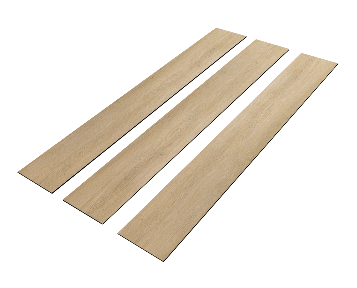 Vinylová podlaha s Click systémom, celková hrúbka 5 mm, z toho: nášľapná vrstva je 0,5 mm, 1 mm integrovaná podložka EVA, skosené hrany po všetkých 4 stranách. Rigidné SPC vinylové dielce.