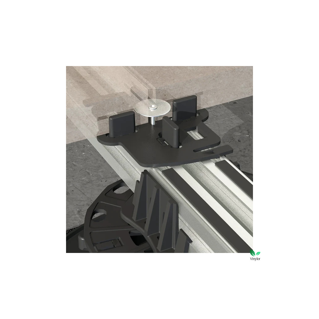 Upevňovací klín pre keramické dlažby sa skládá z jednoho krížového klipu (spoje 3 alebo 4 mm s prerušitelnými úchyty), který dokonale sedí na nosníku Keradeck®, jedné šroubové matice (výška 20 alebo 30 mm) a jedné podložky pre upevnení dlažobných desek.