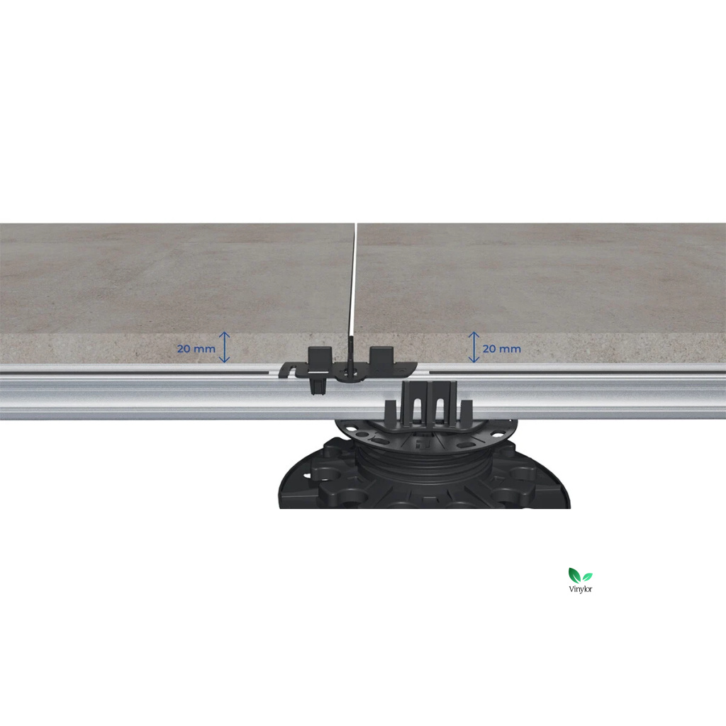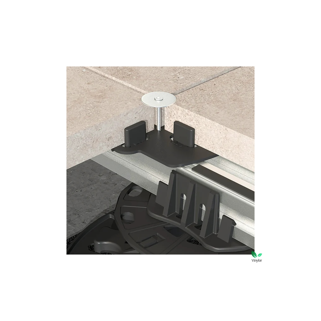 Systém je navržen tak, aby spojoval všechny dlažobné desky do jedné pevné plochy (protože sú navzájem propojeny) k nosníku Keradeck® a poté k podperám Arkimede®.