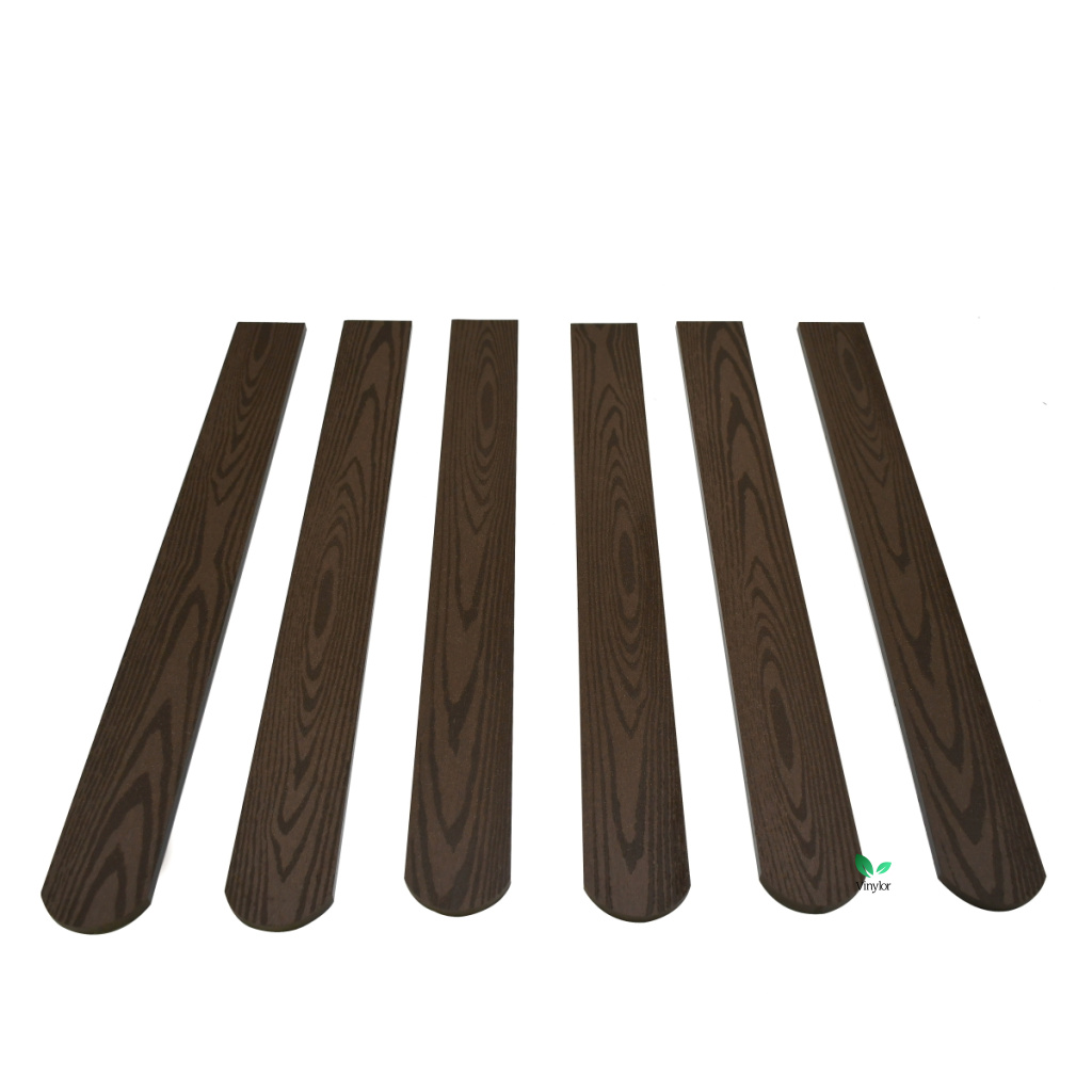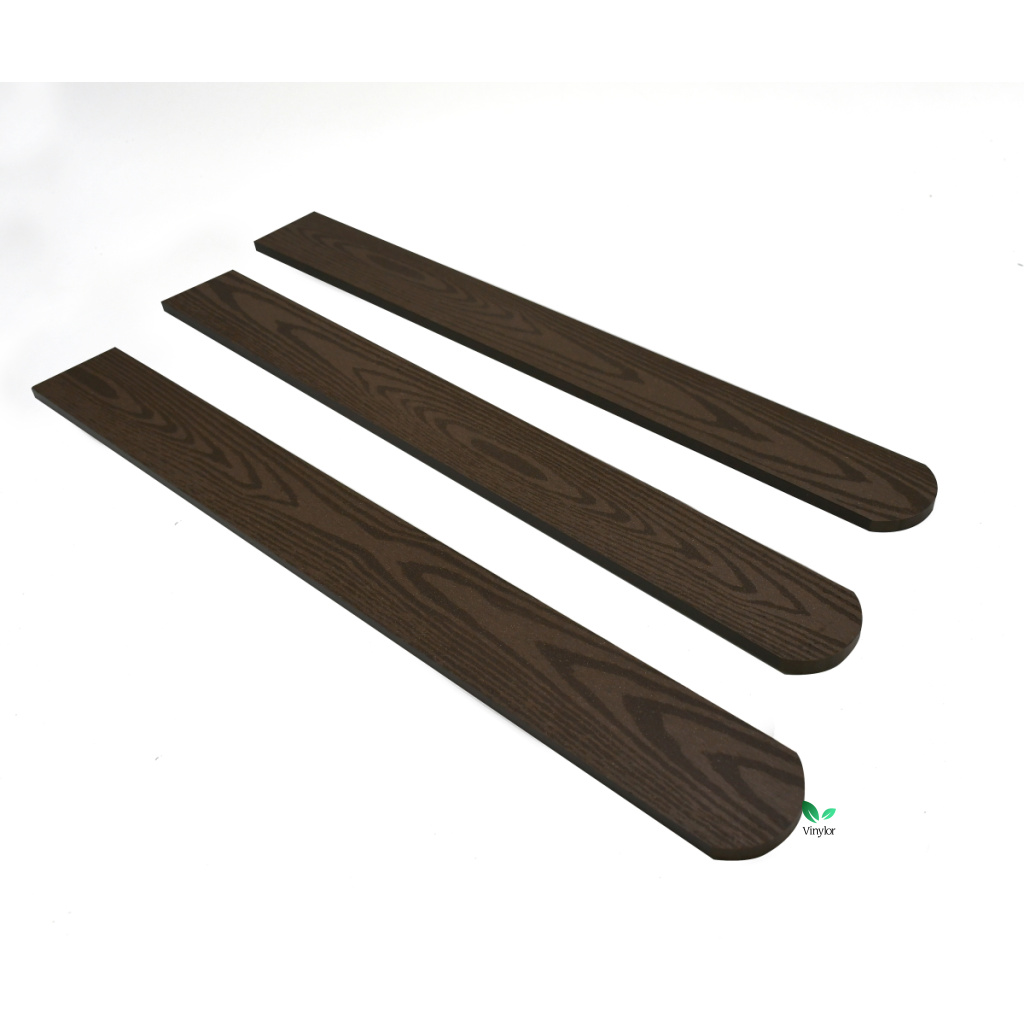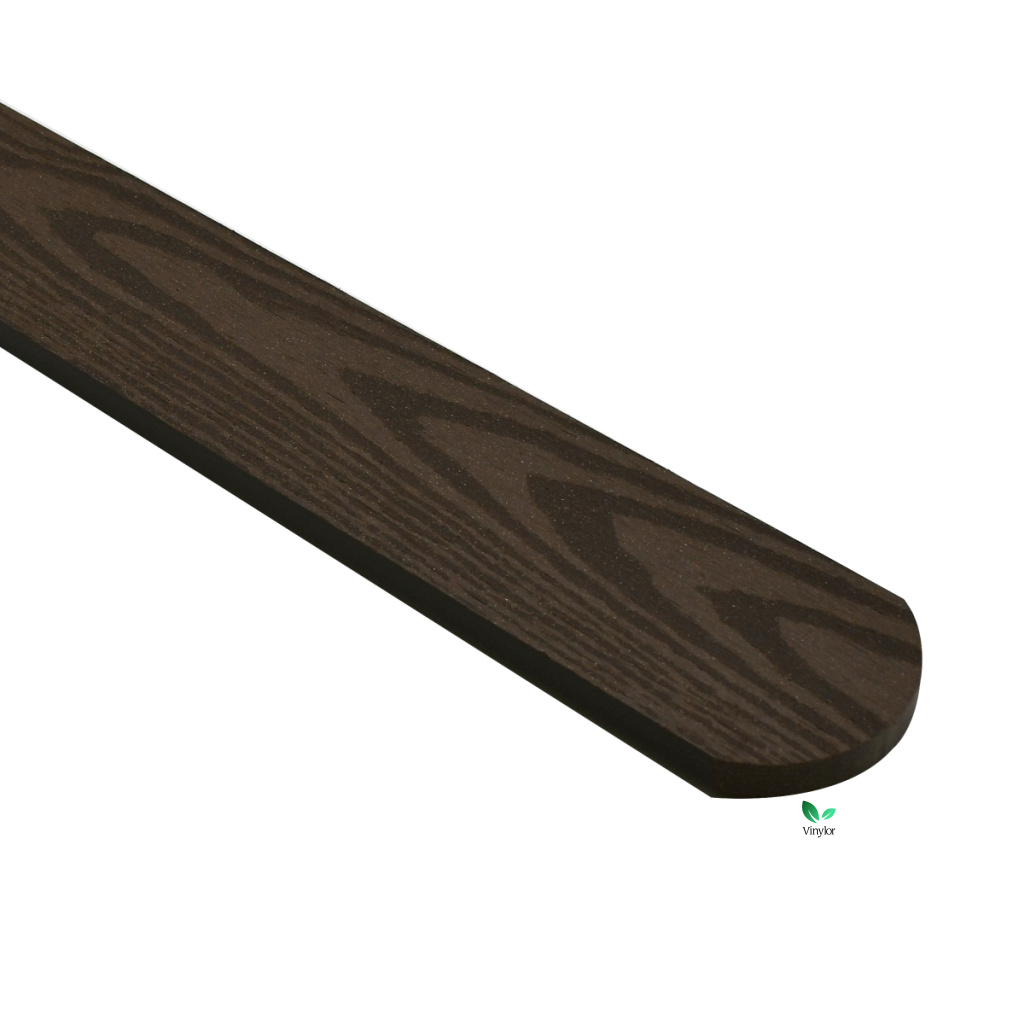 Bezúdržbové a stálobarevné WPC drevoplastové plotovky s embosovaným obojstranným drevodekorom. Farba tmavohnedá. S polkruhovou hlavou.
