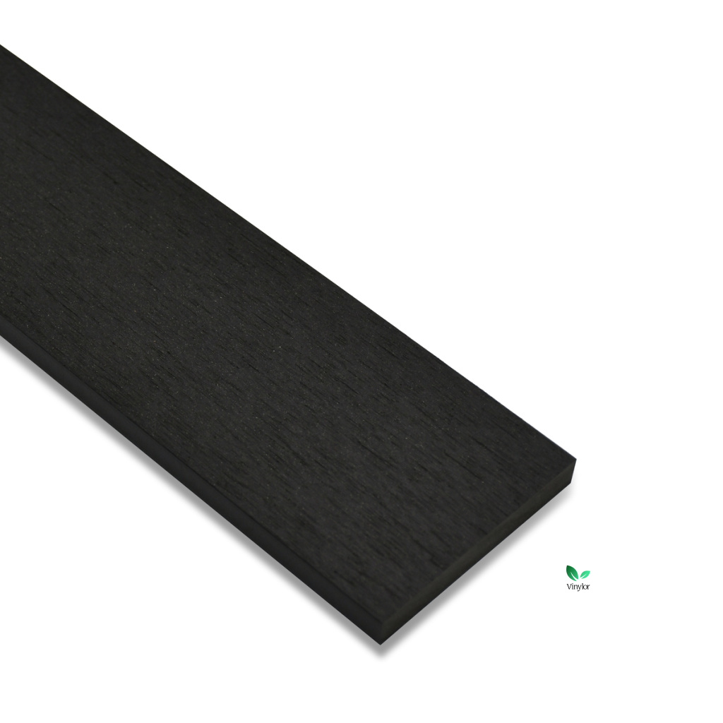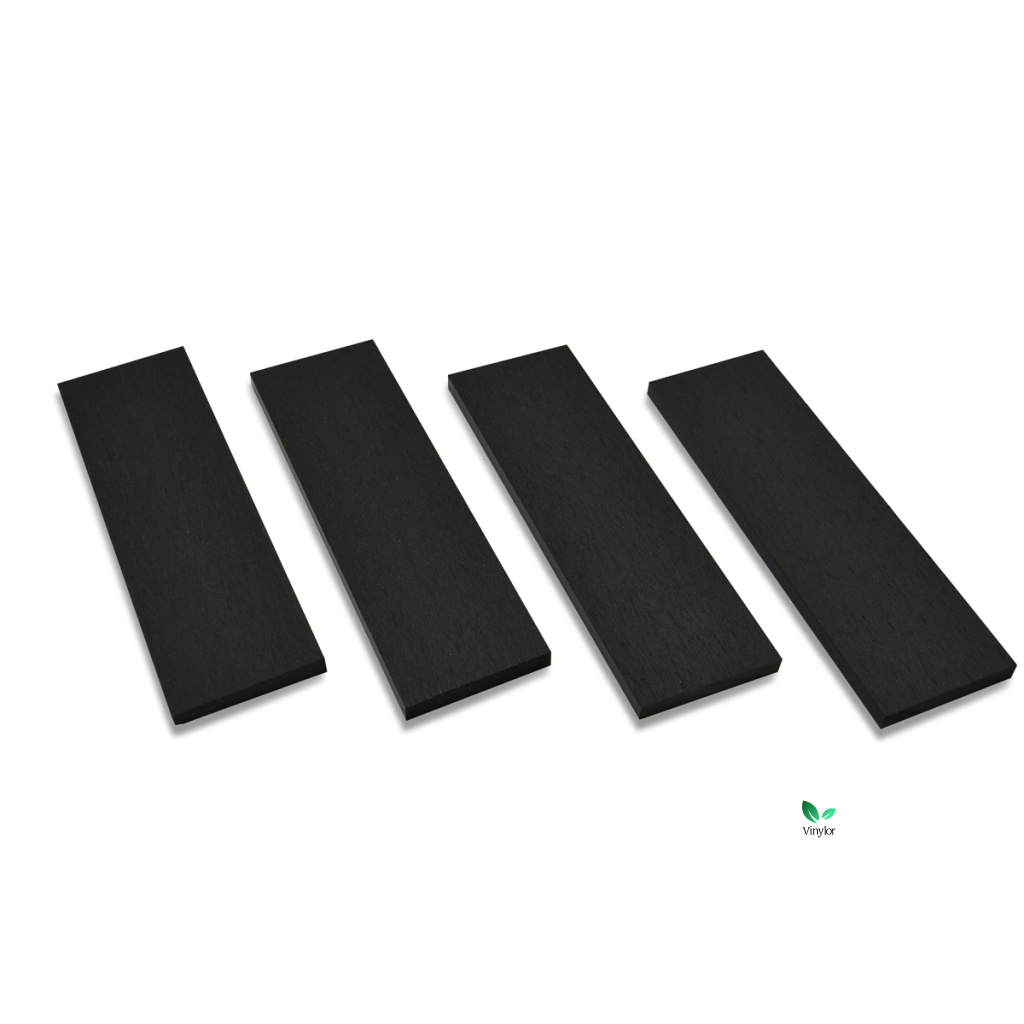 Bezúdržbové a stálobarevné WPC drevoplastové plotovky s embosovaným obojstranným pieskovým dekorom. Farba tmavosivá. S rovnou hlavou.