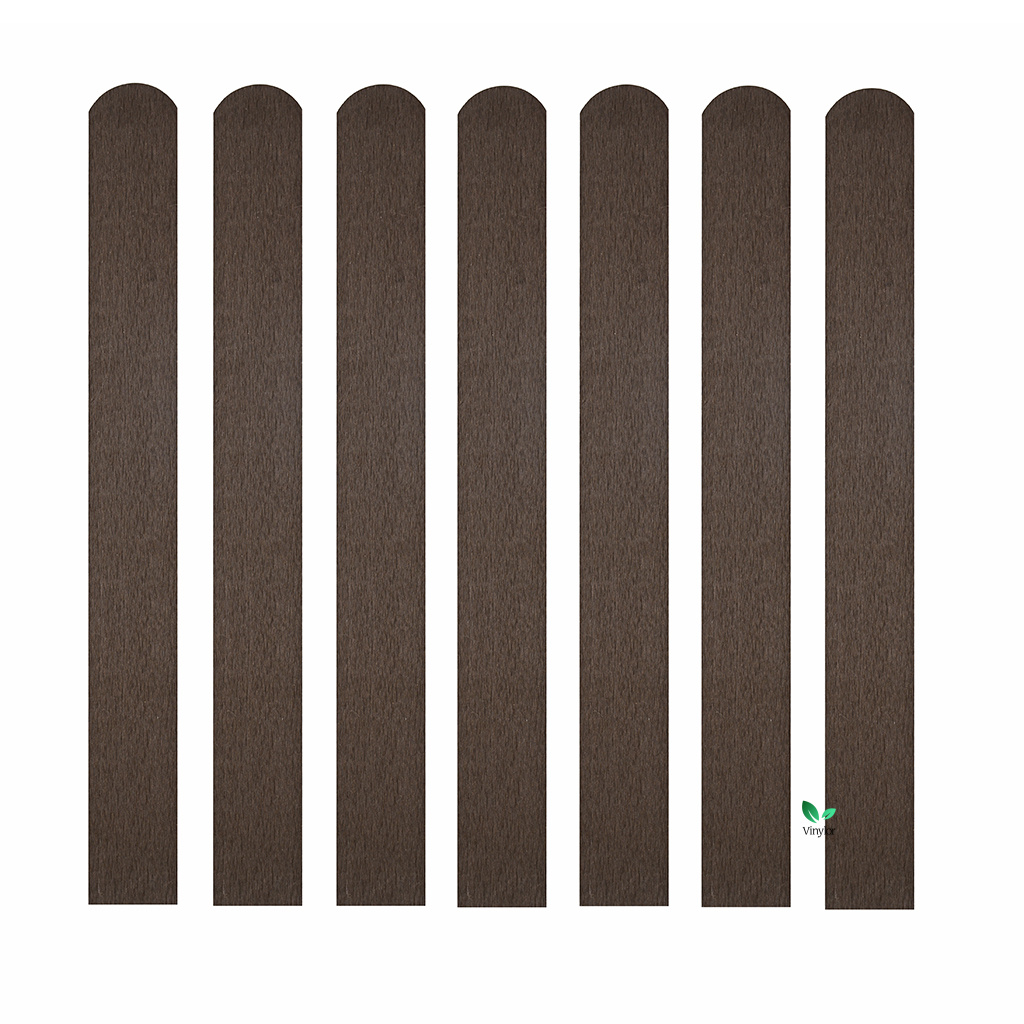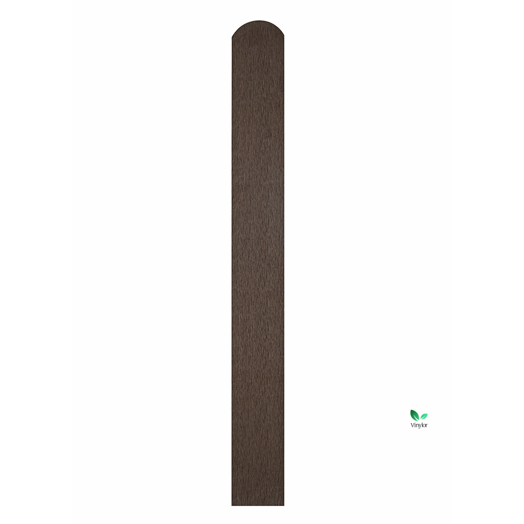 WPC plotovka s polkruhovou hlavou v hnedom odtieni bez drevodekoru. Odolná, bezúdržbová a snadno montovatelná.