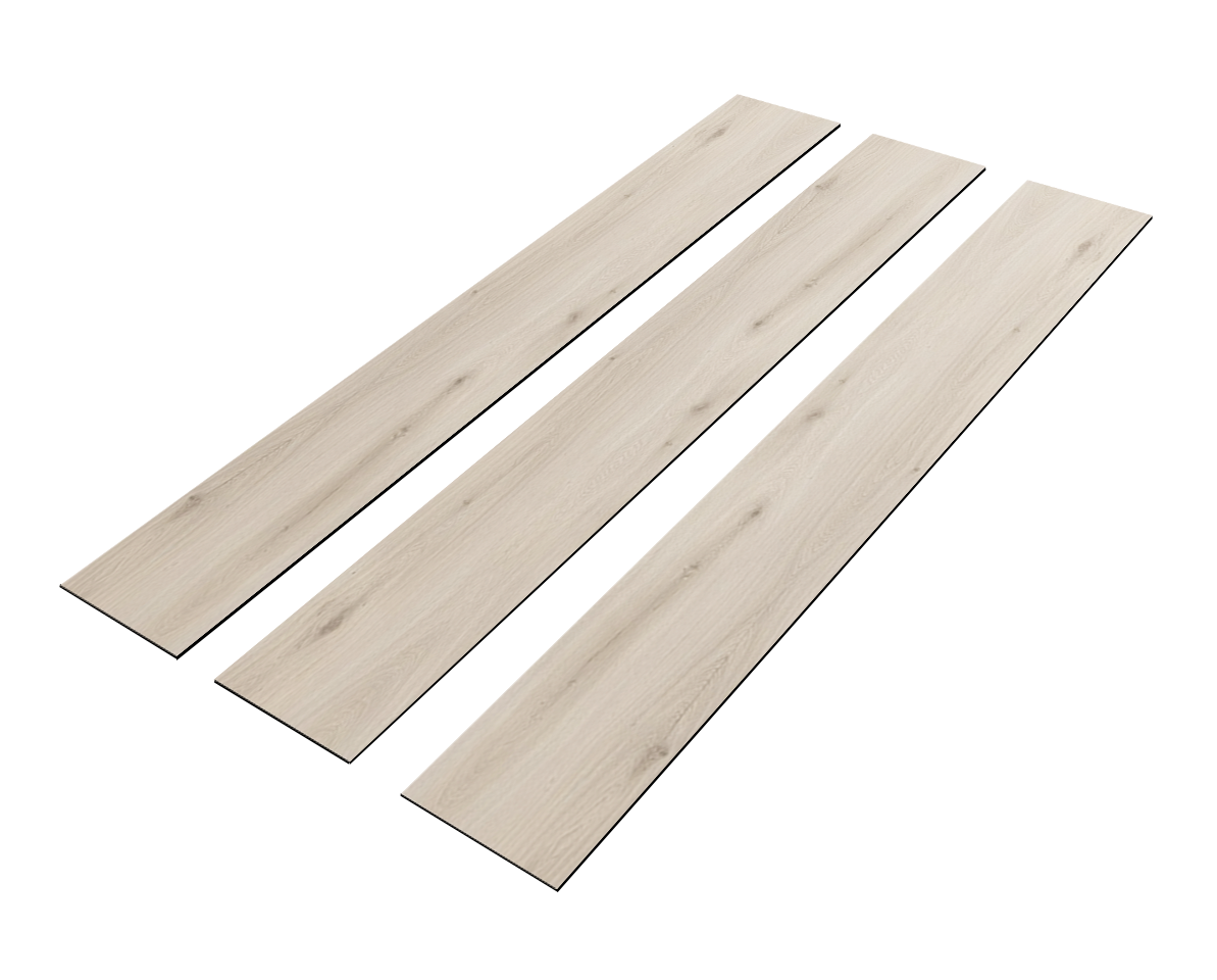 Vinylová podlaha s Click systémom, celková hrúbka 5 mm, z toho: nášľapná vrstva je 0,5 mm, 1 mm integrovaná podložka EVA, skosené hrany po všetkých 4 stranách. Rigidné SPC vinylové dielce.
