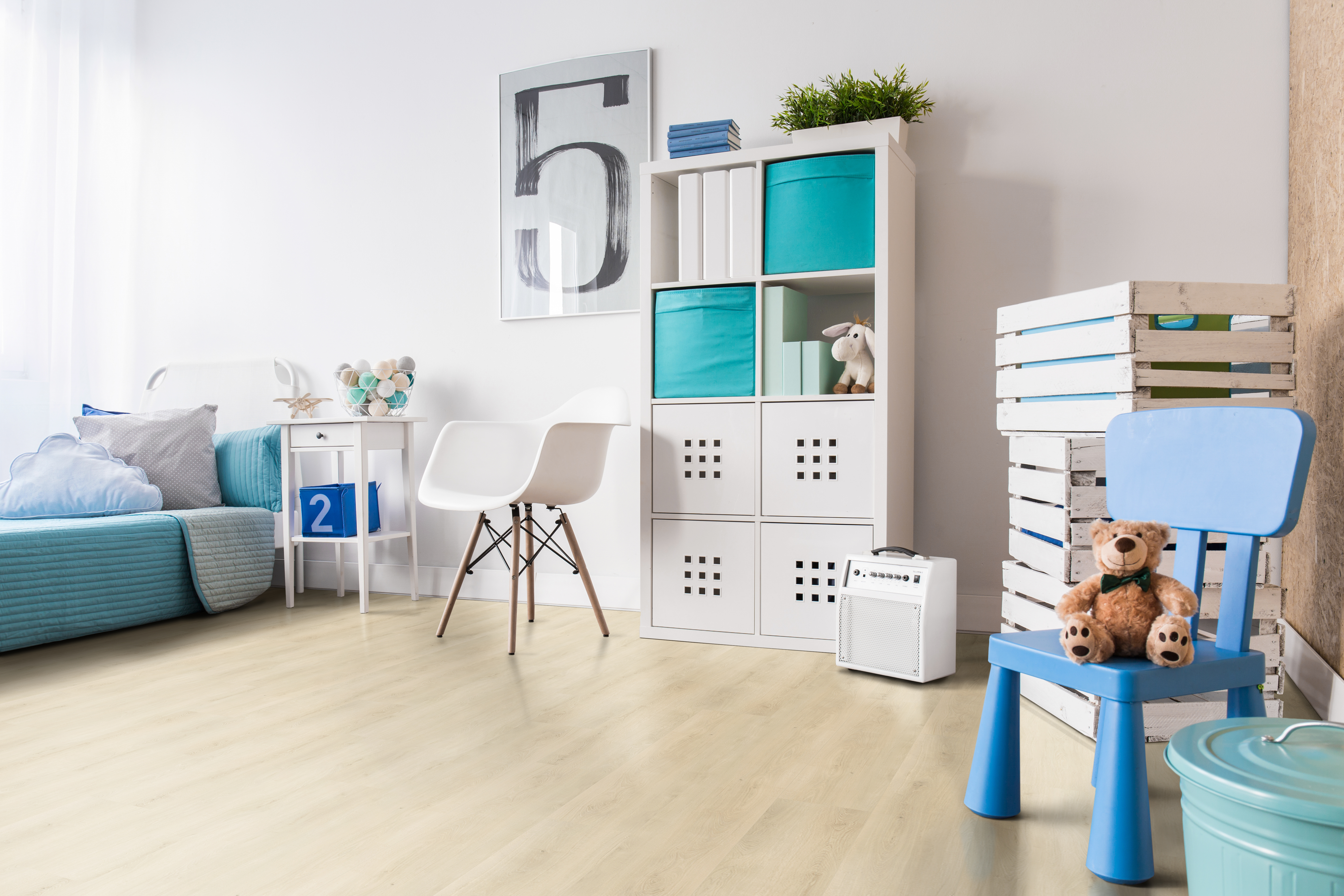 -Povrch podlahy tvoří 0,5 mm silná PUR vrstva, která brání jak mechanickému poškození nečistotami a běžným provozem, tak chrání povrch podlahy proti vyblednutí.