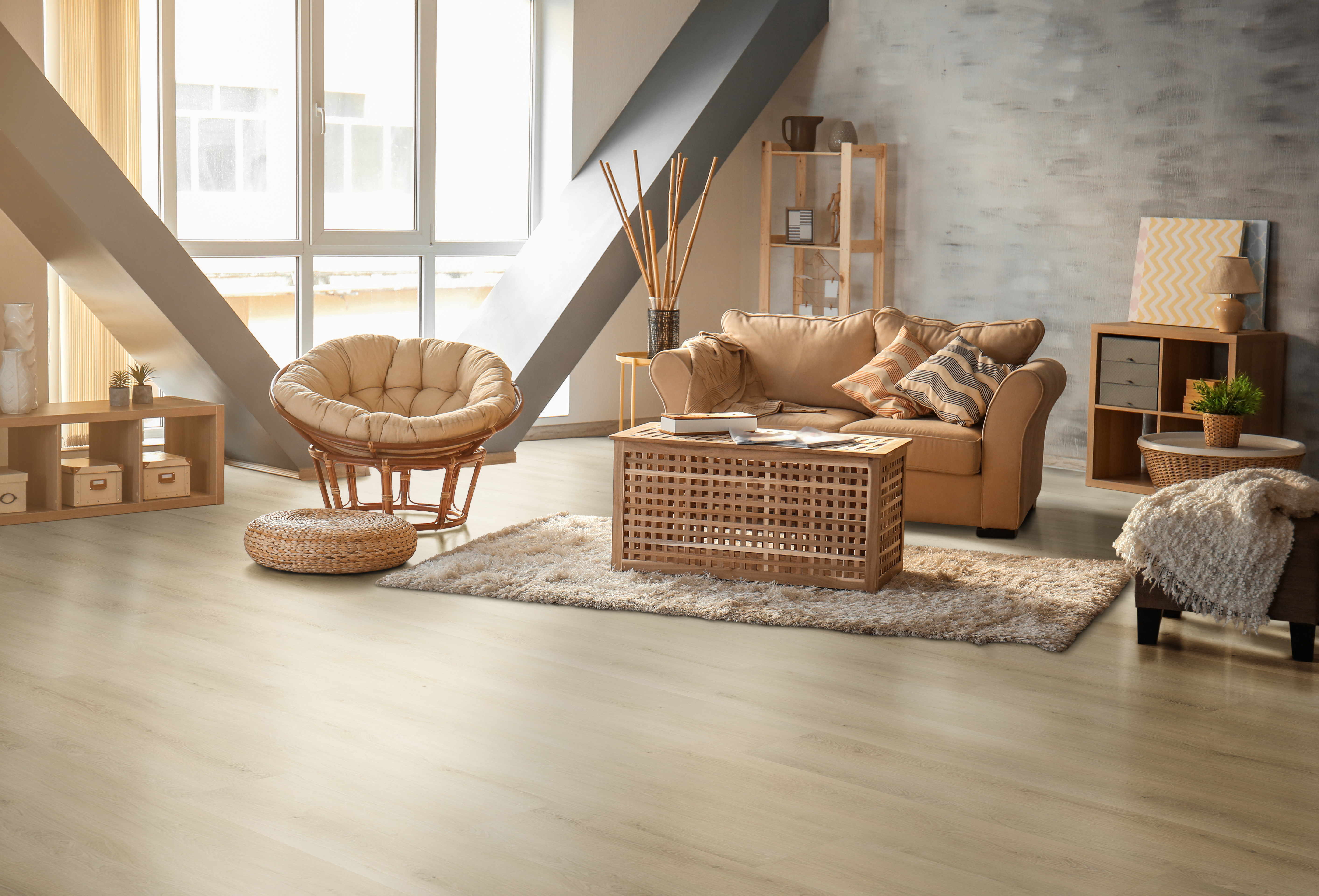Vinylová podlaha s Click systémom, celková hrúbka 5 mm, z toho: nášľapná vrstva je 0,5 mm, 1 mm integrovaná podložka EVA, skosené hrany po všetkých 4 stranách. Rigidné SPC vinylové dielce.